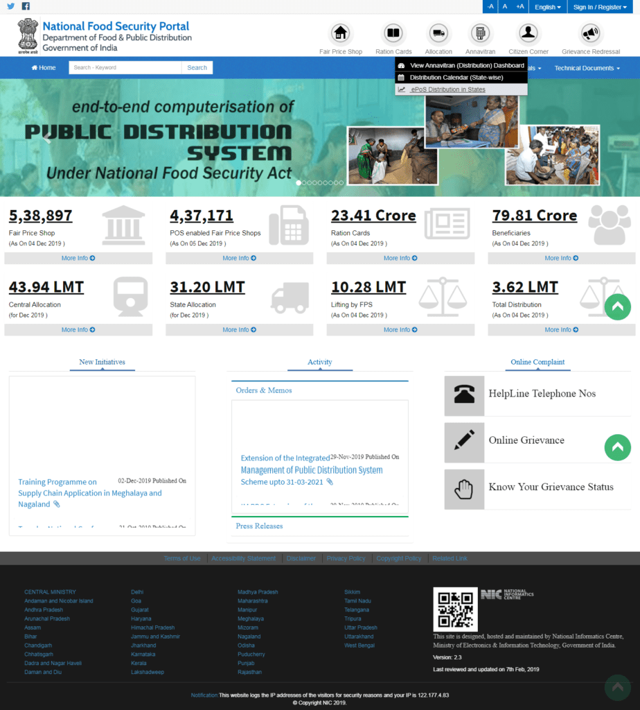 - राशन कार्ड की सभी दुकानों को कॉमन सर्विस सेंटर से जोड़ा गया है।