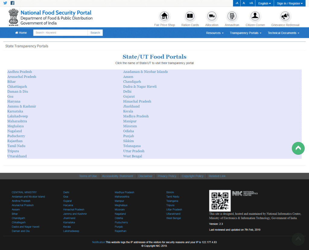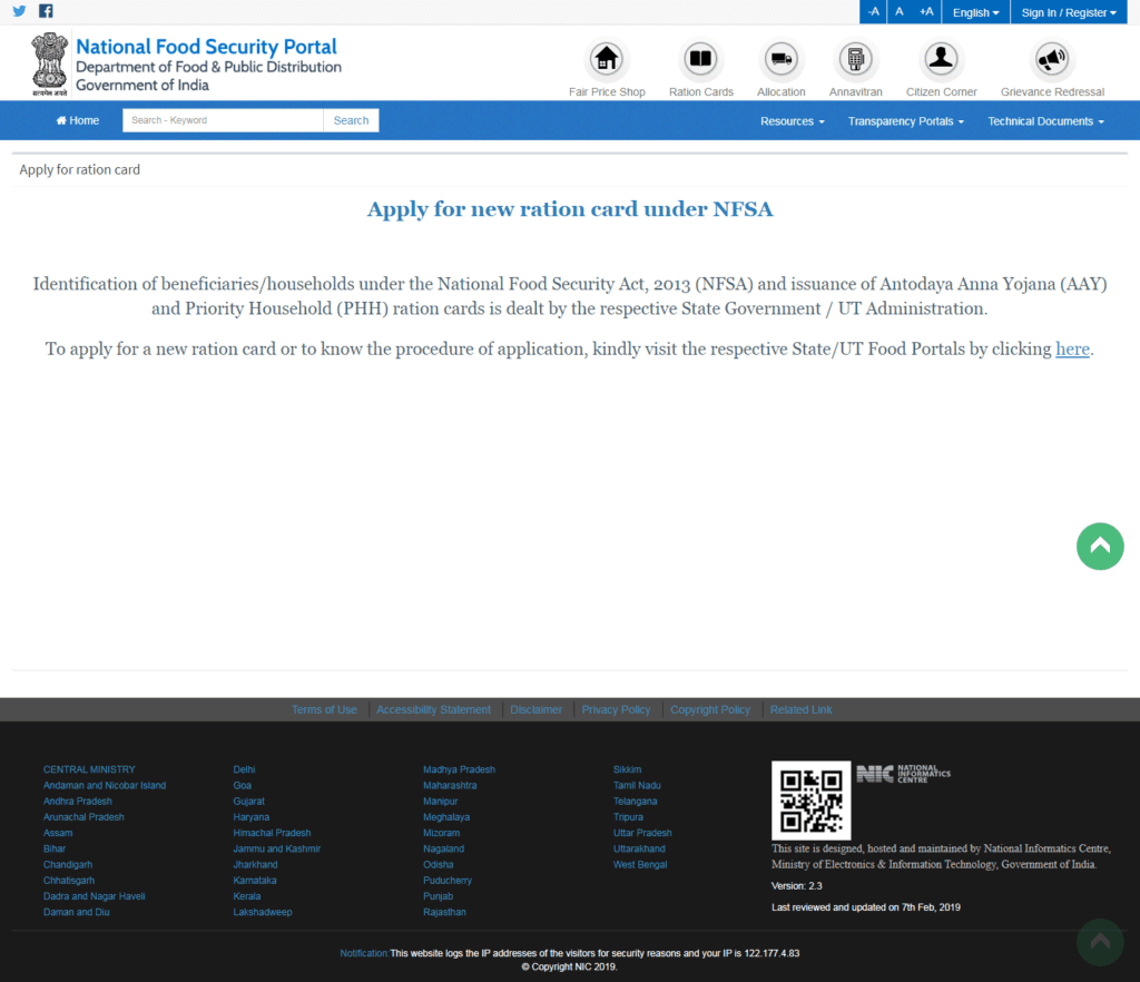 - सबसे पहले NFSA की अधिकारिक वेबसाइट https://nfsa.gov.in/ पर क्लिक करें।