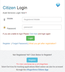 Step 2- उसके बाद आवेदक की स्क्रीन पर यूपी सरकार का ई- नगर सेवा पोर्टल का होम पेज खुलेगा, जहां पर उसे रजिस्ट्रेशन करना है।