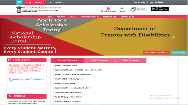 ऑनलाइन नेशनल स्कॉलरशिप एप्लीकेशन फॉर्म 2020