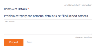 Step 3. फिर आपको ‘Complaint Detail’ में LPG Subsidy लिखना है और Proceed पर क्लिक करना है।