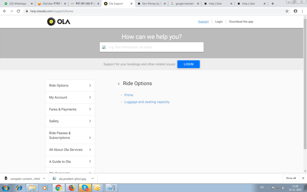 - इसके अलावा आप Ola की ऑफिशल वेबसाइट https://www.olacabs.com/outstation पर मौजूद support वाले ऑपशन में जाकर how can we help ? में जाकर कंप्लेन कर सकते हैं। आप इस चैट बॉक्स में जाकर चैट के जरिए अपनी समस्या कंपनी को बता सकते हैं।