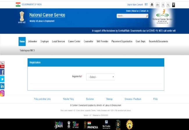 इसके लिए सबसे पहले आवेदक को National Career Service की Official Website पर जाना होगा|Official Website पर जाने के बाद आपके सामने होम पेज खुलेगा|