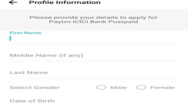 पेटीएम पोस्टपेड पर क्लिक करते ही आपके सामने एक और नया पेज खुल जाएगा जिसमें आपको पेटीएम पोस्टपेड के बारे में कुछ जानकारी दिखाई जाएगी इसके बाद आपको यहां पर NEXT करना है। इसके बाद आपके सामने एक फॉर्म खुल जाएगा जिसमें आपको अपनी बेसिक जानकारी भरनी है जैसे अपना नाम मध्य नाम अंतिम नाम जेंडर डेट ऑफ बर्थ इत्यादि उसके बाद आपको ओटीपी से वेरिफिकेशन कंप्लीट कर आना है और आवेदन की सभी नियम और शर्तों को पढ़कर और एग्री करके फॉर्म को आई एक्सेप्ट सबमिट कर दें उसके बाद नीचे आपका एप्लीकेशन सबमिट लिखा नजर आएगा।