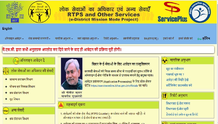 - सर्वप्रथम आपको RTPS बिहार की ऑफिसियल वेबसाइट पर Login करें।