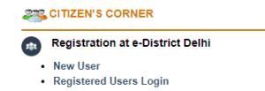 Step 2- उसके बाद इस पोर्टल का होम पेज खुलेगा, जहां पर आपको यूजर आईडी बनानी होगी। इसके लिए ‘Registration at e- District Delhi’ विकल्प के अभिभाग ‘New User’ पर क्लिक करना है।