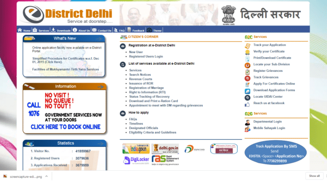 Step 1- सबसे पहले आपको दिल्ली सरकार द्वारा लॉन्च किया गया e- Destrict Delhi पोर्टल की अधिकारिक वेबसाइट https://edistrict.delhigovt.nic.in/ पर जाना होगा।