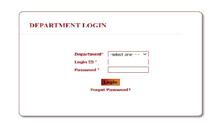 डिपार्टमेंट लॉगिन करने का प्रोसेस-