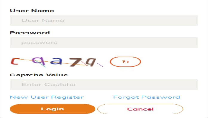 - अगर आप पहले से पंजीकृत है तो इस login form में अपना User name एवं Password डालकर login करें अन्यथा New User Register Here के Option पर क्लिक करें।