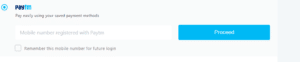Step 9– जिसके बाद एक नया टैब खुलेगा। अगर आपने Powered by Paytm विकल्प चुना है, तो आपको Patym ऑपशुन चुनना है और अपना मोबाइल नंबर भरकर Proceed पर क्लिक करना है।