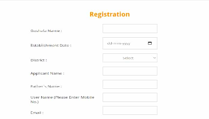 - फिर इन न्यू पेज पर आपको उसमे मांगे गए विवरण को भरना होगा। उस पेज पर उल्लेखित विवरण कुछ इस तरह के है- जैसे गौशाला का नाम, जिला, आवेदक का नाम, पिता का नाम, ईमेल आईडी, पासवर्ड आदि भरें।