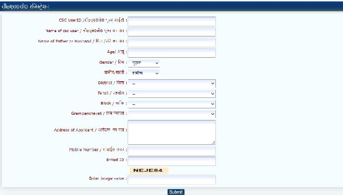 - फिर इसमें मांगी गयी जानकारी को भरें- यूजर आईडी,नाम, पिता/पति का नाम, तहसील, ग्राम पंचायत,मोबाइल नंबर, आदि भरने के बाद दिए हुए कैप्चा कोड को भरें।