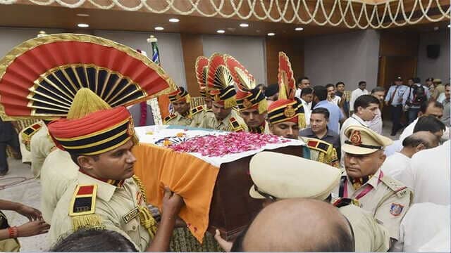 पूर्व वित्त मंत्री अरुण जेटली को कल राजकीय अंत्येष्टि की गई। राज्यकीय अंत्येष्टि के साथ किए जाने वाले अंतिम संस्कार में पार्थिव शरीर को तिरंगे में लपेटा जाता है। दिवंगत व्यक्ति के सम्मान में मिलिट्री बैंड शोक संगीत बजाते हैं और इसके बाद उन्हें बंदूकों की सलामी दी जाती है।